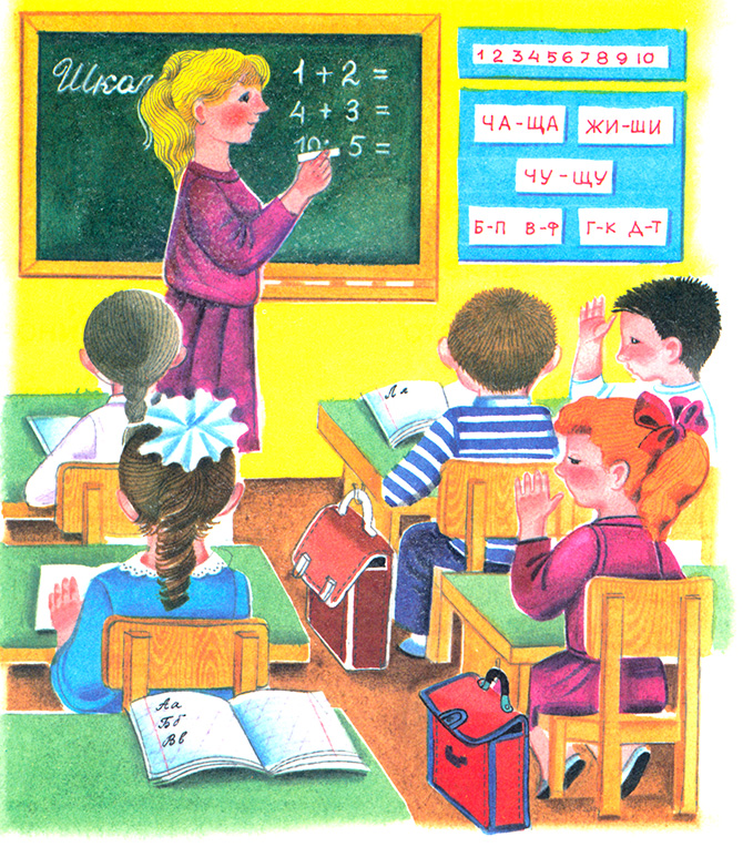 Постепенно вводите «школьную» лексику: урок, учитель, ученики, перемена, журнал, парта, мел, ответ, отметка и т. д.